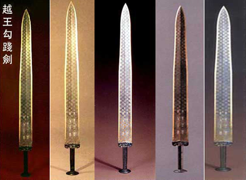 成语“卧薪尝胆”中的男主角勾践嗜好铸剑。据《拾遗记》记载:“越王勾践,使工人以白马白牛祀昆吾之神,采金铸之以成八剑之精,一名掩日,二名断水,三名转魄,四名悬翦,五名惊鲵,六名灭魄,七名却邪,八名真刚。”他还热衷于搜集和珍藏名剑。当时的宝剑鉴定大家薛烛,当他看到勾践珍藏的宝剑时,大吃一惊,说他从来没有见过这稀世之宝。