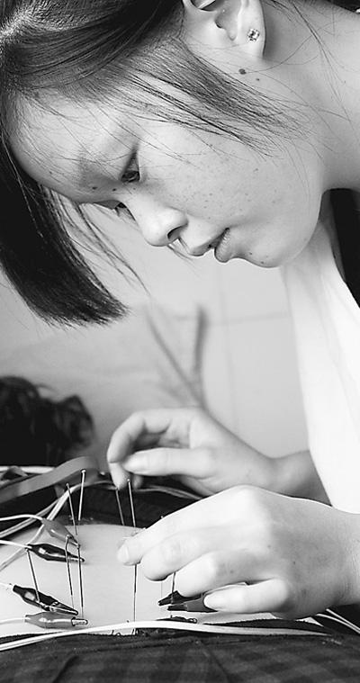 图为11月17日,安徽省繁昌县中医院,一位大学生在学习针灸疗法。