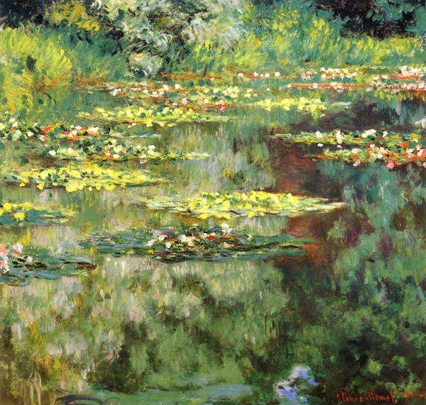 但是,从《日出印象》到《睡莲》,所有人都觉得他的画风发生了改变。《睡莲》的风格好像已与印象派刚出现时的风格有所不同。在湖蓝的水面上,“睡莲”的红花白蕊简洁、飘逸。几笔涡形的绿色勾画出水的波动,造成闪动的效果。画面上的蓝、白、红等色彩充分体现出来,视觉印象非常强烈。这幅作品用率意的方法,以超出写实的严谨,达到一种中国艺术“写意”的形态,体现出一种精神自由状态中的梦幻感。无疑,它构思的奇特、笔触的灵动、境界的高远,都美妙无比。这与其年轻时的作品相比,显得更加地安静与温和,这不但和他的年龄变化有关,也与其心理上的变化有关。晚年的莫奈几乎将所有的精力都投入到了有关《睡莲》的创作当中去了。评论家瓦多伊的评价是:“在这些画里存在着一种内在的美,它兼备了造型和理想,使他的画更接近音乐和诗歌。”
