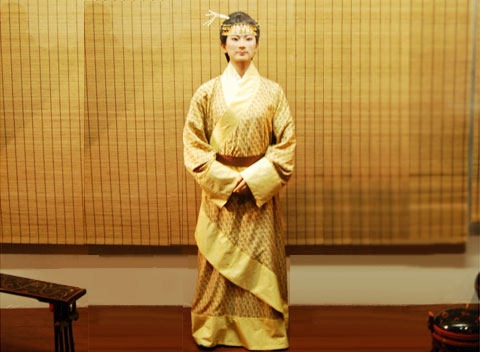 予侯夫人“辛追”遗体出于马王堆一号墓内棺,出土时身高1.54米,体重34.3公斤。虽在地下沉睡了2000多年,但外形保存完整,全身润泽,皮下软组织柔软而富弹性,关节尚可活动,是世界防腐史上的奇迹。图为予侯夫人辛追撤消塑像。