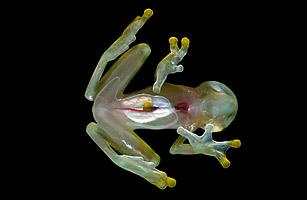 要是所有青蛙都像瞻星蛙科这样全身透明,那么就可以有无数青蛙免于被解剖的命运了。其中最极端的一个例子于去年发现于南美洲国家厄瓜多尔。这种青蛙的身体极度透明,甚至它跳动的心脏都清晰可见。这种青蛙新种应当属于广泛分布于中南美洲的大约150种透明蛙类中的一种,但毫无疑问这种青蛙看上去是最吸引人的。