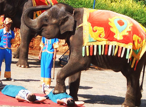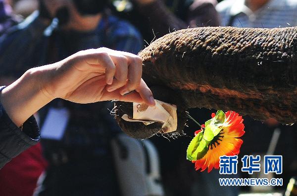 在云南省西双版纳一处野生动物公园,一头大象在进行表演(新华社记者 吴晓凌摄)