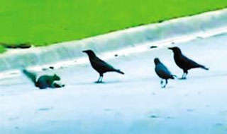 视频《不要动我朋友》中,一只松鼠为保护同伴尸体,与几只乌鸦对峙搏斗。在动物世界也不乏为朋友行侠仗义的感人举动。