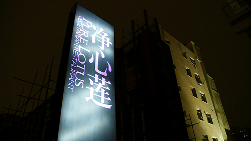 北京长虹桥附近的「静心莲」素食餐厅,是一家很有「禅意」的餐厅。它坐落于东三环长虹桥下,向东五十米处,遇红绿灯回转二十米然后就靠边进人家有保安的小区里。从停车场一路会有人指路到餐厅。