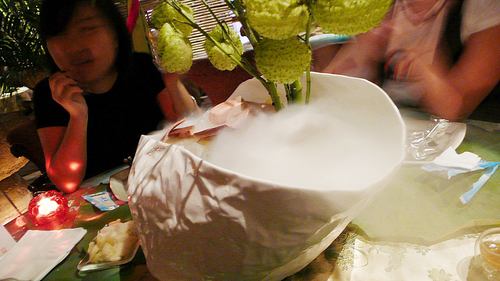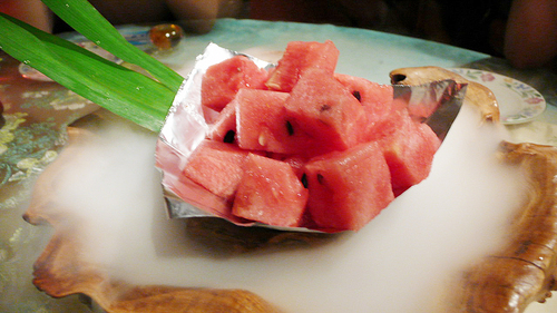 巨大的盆景,原来是生魚片,使用和日式生魚片相同的摆盘方式,里头放的是一些豆制品制成的仿真生魚片,很有新鲜感,是个有趣的菜!