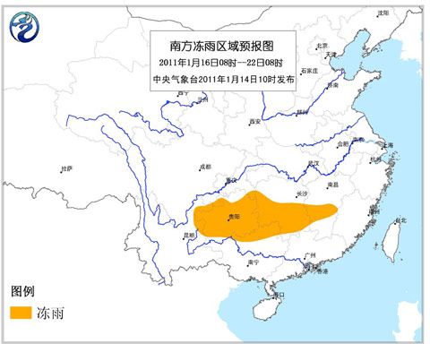 伴随着雨雪,南方的冰冻范围将逐渐扩大,强度也将有所加强,贵州、云南东北部、重庆东南部、湖南西部和南部、广西北部、江西中部的部分地区都将出现冻雨,其中18日至19日最强。