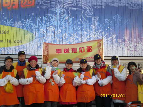 这一百多位奉粥志愿者中,有中国民主同盟会的成员,清华北大的学生,还有社区居民,外企白领等等各行各业人士。虽第一次参加这种慈善活动,感觉到了为别人无私付出的快乐。记者了解到,为了能让更多人喝上腊八粥,志愿者们凌晨两点就起来熬粥了,四点多钟将最先熬好的几桶粥供养给了龙泉寺和广济寺。有位李小姐说:“上班前来参加仁爱奉粥活动,给自己过了一个特别的腊八节,工作都有干劲了!” 一位大学生说:“每一杯粥送出去的时候,不管对方接受不接受,都要微笑着跟对方说‘仁爱祝您腊八节快乐!’,送人玫瑰,手有余香啊!”由于工作原因,很多年轻人都忽略了这个节日,CBD仁爱心栈还为路人准备了一份小礼物:每人一包腊八粥料,并向他们介绍了腊八节来历,弘扬传统文化和慈善精神。红莲仁爱心栈在西客站南广场不但奉粥,还带领旅客和西站的弱势群体一起学习弟子规,通过学习调养身心。清华科技园仁爱心栈全体志愿者们迎着朝阳,齐做仁爱手语操,为本次腊八奉粥活动画上了圆满句号!