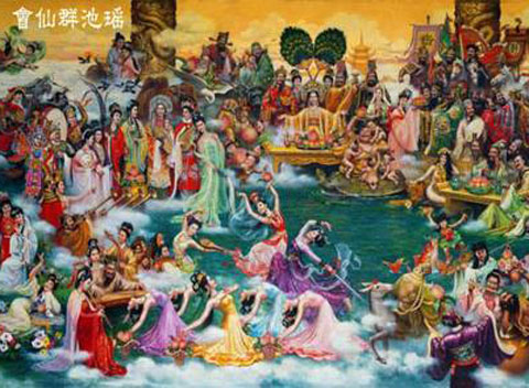 瑶池仙境,人间极乐,憧憬着道教对人类大同的终极关怀。对一种美好社会的追求是人类共同的愿望。而当今的人类所追求的美好社会又是什么呢?综合各种宗教、各种学说对理想社会之描述,其共同的追求,不外乎是没有战争,没有灾祸,众生平等,物质丰富,和谐幸福。道教对大同世界的种种描述,从西王母所居的瑶池仙境中可以得到很形象的体现。例如“琼华之阙、光碧之堂”、“连琳彩帐,明月四朗”“神籁自韵,八会之音”等等。古典小说《西游记》对瑶池仙境的描写,更是出神入化。引人入胜。我们绝不能看成仅仅是景色的描写,其中所蕴含的是天地和谐,阴阳协调,太平安乐,人人长生的理想境界。