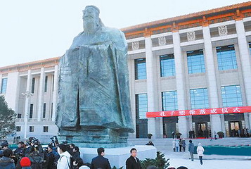 这是中国很重要的一个信号,它反映了中国现在正在寻找自己的文化,9米5代表着九五之尊,在天安门广场这样一个神圣的地方,那个地方历来就是毛主席的像、孙中山的像,现在又多了孔子这么大的一个塑像,应该说意义非凡。