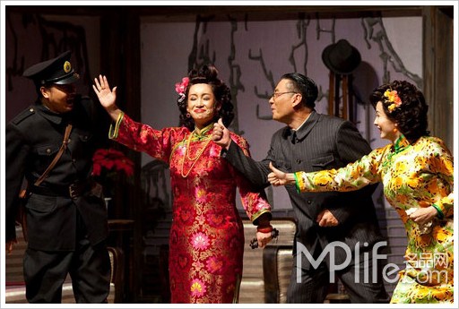 即便有秦海璐(饰大赤包)的“自毁形象”、陶虹(饰胖菊)的不管不顾,辛柏青(饰冠晓荷)的反派形象,朱媛媛(饰韵梅)的贤惠淑良,但是没有生活在胡同里的生活体验,是无法演出生活在小羊圈胡同里所应该有的市井百态,人物个性的谦卑、倨傲、悲悯、善良。在一个四世同堂的家庭里,祁家四世同堂的亲情并没有得到伸展,也许是时间的容量不够吧,祁老爷子对隔代的抚爱没有机会表现出来,北京城的人情味也就湮没在3小时的场景不停转换中了。话剧《茶馆》中,两个旗人不停地相互行旗人作揖之礼,令人看了过目不忘——只有京城里的人们才有这样的礼数,就像今天两个懂得酒道的人在酒桌上不停地把自己的杯子向下挪移一样。可惜,在话剧《四世同堂》中看不到类似过目不忘的生活场景。