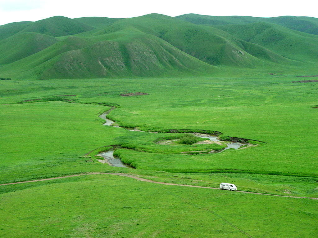 黄褐色的土路在荒野上断断续续地延伸,从绿草中时隐时现,地平线始终遥远,蓝天下迟迟没有出现六连的踪影——它们在我熟知的画面上,是一大片赭红的砖房和黄泥土圈,被白云衬托着,从浓绿色的草地上浮升上来。
