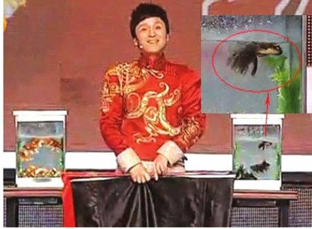 昨晚,央视元宵晚会与湖南卫视元宵喜乐会都如期播出。有趣的是,两台晚会的最大看点都是魔术,但不同的是,宋祖英在央视反串表演硬币魔术,观众看得轻松愉快;而傅琰东在湖南卫视所谓的央视春晚魔术《年年有鱼》揭秘环节中,并未给予实质揭秘,反而在表演新魔术中让网友质疑“变死”了一条金鱼。