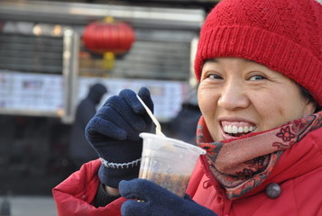 天渐渐的亮了,大家有条不紊的忙碌着,我不时地举起手中的相机拍下许多美好的瞬间,这时刘军师姐从我身旁走过,高兴的对我说:瞧!就那个人是刚从南方来京的,接过我们给的爱心粥连声说:真好北京!我顺着刘军手指的方向,看到他身穿的衣服很单薄,心想一定很冷吧?我还没来得及举起相机,他就消失在南来北往的人海中。