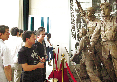 图为一群游客正在余姚梁弄横坎头红色旅游景区参观浙东行政公署旧址