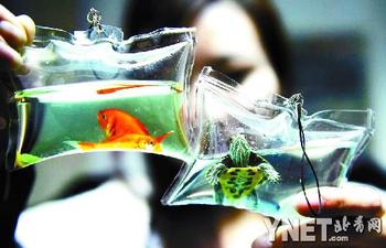 本报讯 把活的小金鱼、巴西龟装进密封的塑胶袋里,做成小挂件,里面仅有一些营养液和氧气,每个卖5至10元。如今,北京有很多小贩在路边出售这样的小挂件,购买的大多是小孩子或是年轻人。环保人士指出,制作这样的挂件就是虐待小动物,应该加强对小孩子的教育,让下一代不要购买。