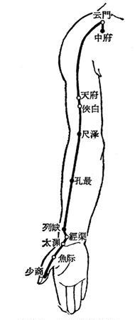 如果肺经病往脏腑发展,就会出现“上气喘喝”,即开始出现喘,这说明病深入脏腑了,和肾精相关。还可能“烦心胸满”,可能会影响到心脏,比如人肺气不足,可能心气会大伤。肺经病也会与胳膊相关,因为肺经出于云门、中府,沿着手臂前缘的上线,一直走到拇指指端。另外一条,会走在食指指端,肺与大肠相表里,所以这个指尖就是经脉阴阳交通之所,是很重要的地方。