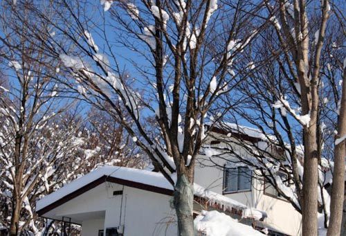 北海道接受了较多的西方文化,这纯粹西式的民宅在此并不稀罕,我想象着小屋中壁炉中暖融融红色火苗,在这大地沉睡的季节,主人在壁炉旁的摇摇椅上惬意地喝着热茶,翻看着小说,傍边的狗眯着眼睛打着瞌睡。