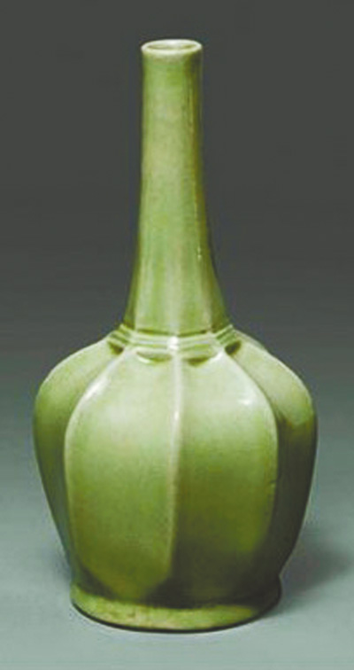 1981年,陕西省扶风县法门寺宝塔轰然倒塌。1987年2月,政府组织重修宝塔并着手清理塔基,同年4月,在这个1000多年前的唐代皇家寺庙宝塔的地宫里,人们不仅发现了佛教圣物——佛骨舍利,而且还发现了一块石刻的供奉物帐碑。碑上明确刻载:“瓷秘色碗七口,内二口银棱,瓷秘色盘子碟子共六枚。”加上另一件放于地宫后室的八棱瓶,法门寺地宫共发现14件秘色瓷器物!这在瓷器研究界无异于石破天惊!秘色瓷——这个千年来只闻其名不见其容的瓷界西施,似乎在地下佛国修行有期,蓦然抚窗凡顾,倩影依稀而令人神往!