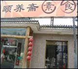 提起素食,人们自然会与吃斋念佛联系起来。走进颐养斋,迎面是一幅巨大的莲花摄影作品,据店主介绍,这幅莲花摄于三亚的南山寺,还有店内的西藏风情图片,都是店主的朋友拍摄的。既给人一种清心的感觉,又给人一种隐隐的禅意。颐养斋室内空间不是很大,一共只有七八张桌子、40把椅子,不过却用镂花木门隔出几个区域,每一区域或遮或挡,自然而然形成较为私密的空间。素食馆内装饰有佛像、经文书法,还有店家自己在西藏拍摄的照片,然而室内茂盛的“滴水观音”却消去了不少庄严的感觉。金玉满堂讨的是个吉利话,端上菜来乍一看是长方厚实的豆腐块,搛入盘中才发现豆腐内另有“文章”,原来满堂金玉都藏在豆腐干里面,细细品来“金”指的是玉米,“玉”用的是竹笋,全部剁成馅,先炒熟后再盛到豆腐块中,然后放入锅中将豆腐蒸熟。这样,豆腐中有了竹笋、玉米的清香,金玉之中又有豆腐的滋味,很是别致。狮子头的做法与淮扬狮子头更是不同,几个狮子头盛在白菜清汤之中,初入口中便是咀嚼纯肉的感觉,但是回味当中却有大豆的香气。原来这里的狮子头用的是从大豆中提取的植物蛋白,难怪初尝起来真能以假乱真。