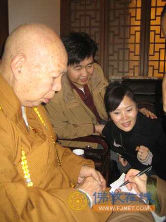 经朋友介绍认识台湾灵岩山寺上妙下莲老和尚,可以说是一种缘份,华仔初见老和尚慈祥而又庄严的法相,听其开示,烦恼顿息,寂静安祥;犹如红尘中之清莲,顿感身心清凉自在;老和尚平实无华的言词,是高僧般若智能的流露;语重心长的剀切教诲,无非是悲愿无尽的度世本怀;华仔悠然生起归依之念,于是在妙莲老和尚接引下,成为真正的佛弟子法名慧果。