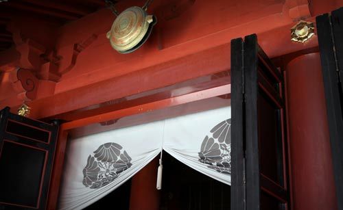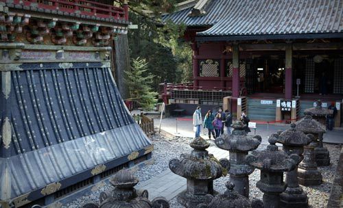 经过东照宫,穿过阳明门和正门,在药师堂停下来,它是这片神圣的神道教区中已为数甚少的几个带有佛教韵味的建筑之一,这座建筑引人之处就是绘在天花板上的巨大的鸣龙。
