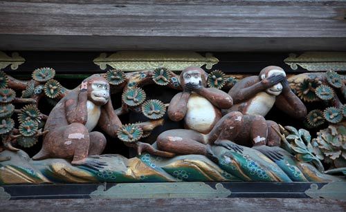 “非礼勿视,非礼勿听,非礼勿言”,《论语》中这句的名言,被日本人记得很清。进入东照宫正门,可见一座本色木建筑,称“神厩舍”,最初是为纪念为德川打天下立过战功的战马。由于古时日本人相信猿猴能使骑马免除疾病,门梁上雕了8只神猿以祜平安。