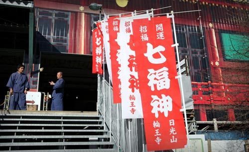 沿着宽广的大道继续向西走几分钟,就会在右手离东照宫不远处看见二荒山神社,它供奉着日本道的3位主神:大已贵命、他的妻子田心命以及他们的儿子味耜高彦根合,他们都因创建和繁荣日本岛有功而受到人们崇敬。