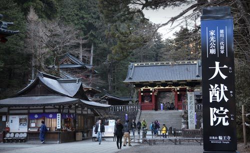 德川三代将军家光的大猷院。从这儿沿200多级台阶往上走也就到了德川家光陵墓。山顶和周围地带的一些壮观景色在此都可一览无余。