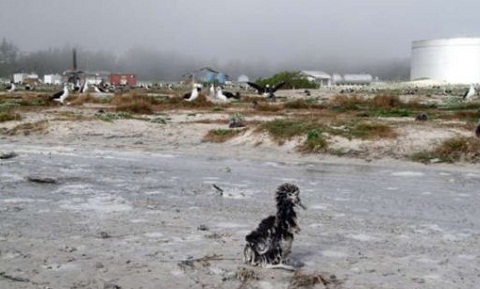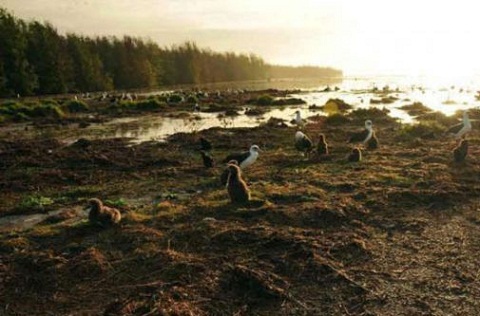 日本海啸巨浪淹没中途岛 数千只海鸟死亡