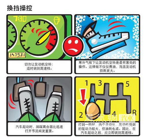 三、换挡操控:当发动机达到约每分钟2000转时,应及时换高挡,对于柴油发动机也应该如此操作。