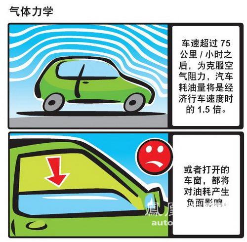 六、气体力学:车速超过75公里/小时后,为克服空气阻力,汽车的耗油量将是经济行车速度时的1.5倍。打开的车窗,将对油耗产生负面影响。