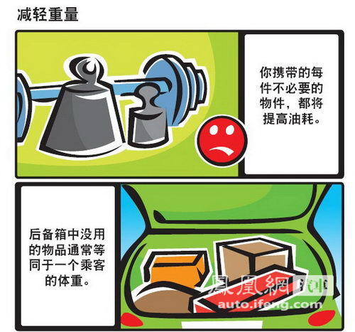 五、减轻重量:你的车携带的每件不必要的物品,都将消耗汽油。后备箱中没有用的物品通常等于一个乘客的体重。