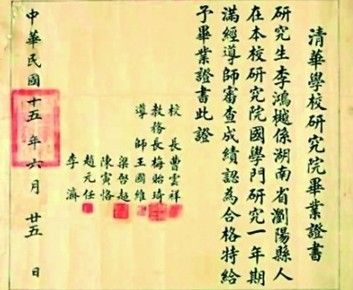 这两天,微博上一张民国时期的毕业证引发了大伙的强烈兴趣,甚至称它是“史上最牛毕业证”。毕业证的主人叫李鸿樾,“清华学校研究院”毕业,说这张毕业证书牛,是因为导师一栏有梁启超、王国维、陈寅恪等人。