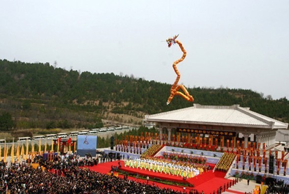 黄帝庙前区气势恢宏,面积约10000平方米的入口广场的地面。选用5000块大型河卵石铺砌,象征中华民族的五千年文明史。