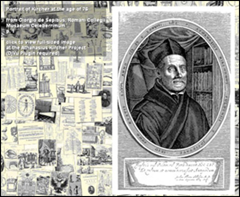 基歇尔(Athanasius Kircher,1602-1680)是欧洲十七世纪著名的学者、耶稣会士。他兴趣广泛,知识广博,仅用拉丁文出的著作就有40多部。有人说他是“自然科学家、物理学家、天文学家、机械学家、哲学家、建筑学家、数学家、历史学家、地理学家、东方学家、音乐学家、作曲家、诗人”(G.J.Rasen Kranz),“有时被称为最后的一个文艺复兴人物”。(《简明不列颠大百科全书》)