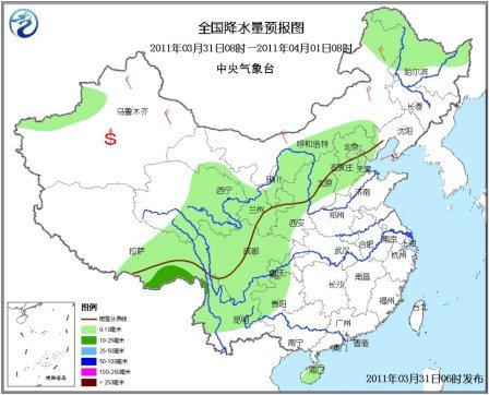 预计从31日开始未来24小时,青藏高原东部、川西高原北部、华北北部和东北地区中北部等地有小到中雪或雨夹雪;其中,青海南部的部分地区有大雪,山西北部、内蒙古河套地区东北部有大到暴雪。西南地区大部、西北地区中东部和华北南部等地有小雨或阵雨。