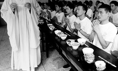 关掉手机,不得使用任何电子设备,换上僧人的麻布衣服,住进寮舍,每天凌晨四点起来做早课,念经打坐,早课结束后,打扫寺院,去田里耕作,吃素斋,并且过午不食。
