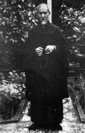 虚云老和尚(1840-1959),俗姓萧,名古岩,字德清,又名演彻、性彻,五十岁后自号虚云,改字幻游,湖南湘乡人。自幼喜读佛典,十五岁时随叔父到南岳进香,遍游诸刹,渐萌出家的念头。次年,择机离家,欲往南岳出家,半途被截回。后被父强徒居闽地,并配娶田、谭二氏,禁锢于一室而无染。咸丰八年(1858),他十九岁,与从弟潜至福州鼓山涌泉寺剃度出家。次年,于妙莲和尚座下受具足戒。此后,习苦行,住岩穴三载,方回涌泉寺,奉师命外出参学,遍历大江南北,习禅研教,亲近善知识。曾自普陀起香三步一跪拜,朝五台;只身入藏地,远至缅甸、锡兰(今斯里兰卡)等地。清光绪二十一年(1895)归国,在扬州高旻寺禅七中悟透禅关,疑根顿断,得偈云:“杯子扑落地,响音明沥沥。虚空粉碎也,狂心当不息。”又颂偈曰:“烫着手,打碎杯,家破人亡语难开,春到花香处处秀,山河大地是如来。” 时年五十六岁。