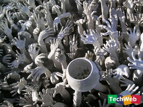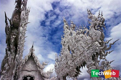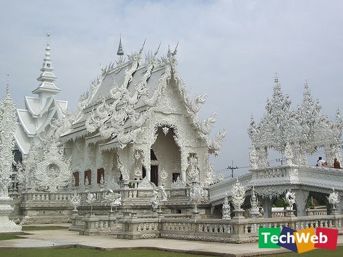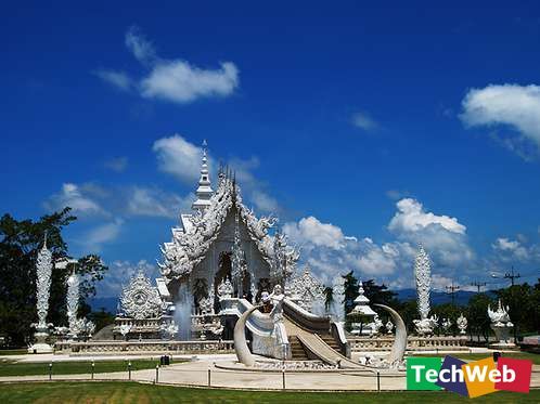 泰国Chiang Rai内的白龙寺是世界上又一个独一无二的寺庙。全寺白色,雕有无数条龙,还有各种华丽造型,并且在这些图案中镀有银色的金属条带,从合适的角度看上去,就像是全寺庙散发着令人惊异的魔法之光。