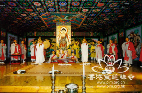 10月25日中国佛教随喜团在韩国太古宗奉先寺观看灵山祭表演