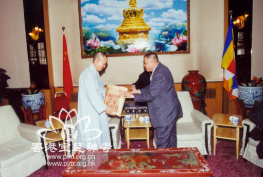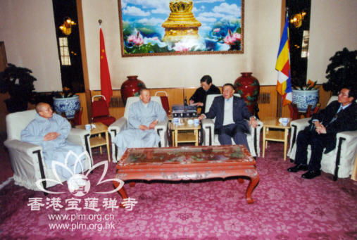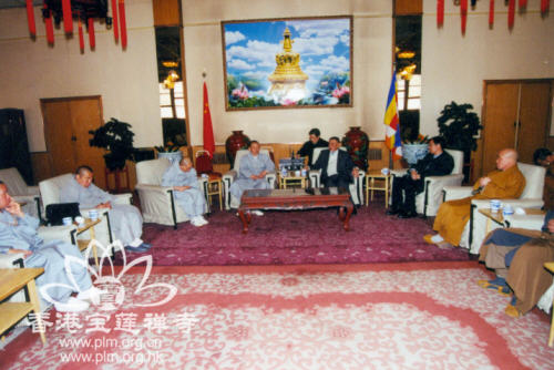 2001年:刀述仁副会长接见前来参加太湖植树的韩国天台宗田云德长老一行