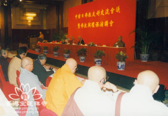 2001年同日 下午,第四次中、韩、日佛教友好交流会议在北京天伦王朝饭店隆重举行。来自中国大陆、韩国、日本以及香港、澳门和台湾佛教界400余位代表参加会议。国务委员司马义•艾买提、全国政协副主席王兆国等出席会议。会议由中国佛教协会副会长净慧法师主持。国家宗教事务局叶小文局长在会上宣读了国务院总理朱镕基给大会发来的贺信。中国佛教协会副会长兼秘书长刀述仁代表中国佛教协会致词。在随即举行的“佛教与环保演讲会”上,中韩日三国佛教代表分别作了基调发言和补充发言。