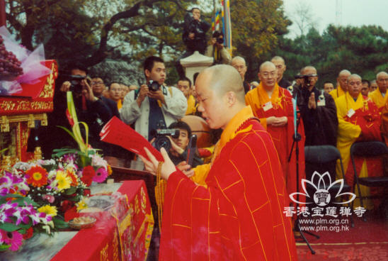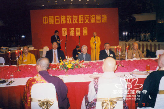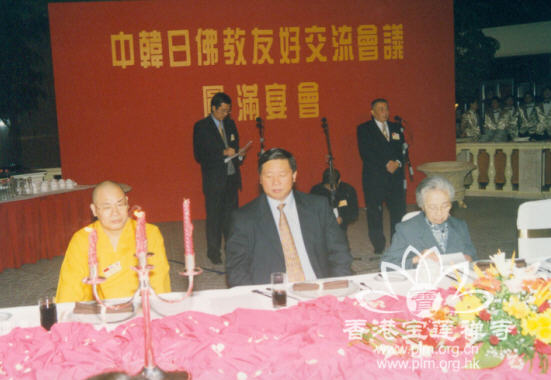 2001年同日 全国政协副主席、中共中央统战部部长王兆国在人民大会堂会见并宴请前来参加中、韩、日三国佛教友好交流会议的韩国、日本及中国大陆和香港、澳门和台湾的佛教界代表。