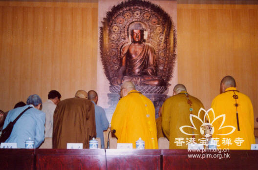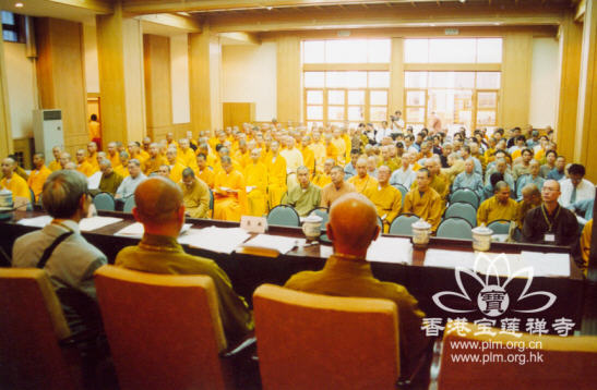 8日上午,中国佛学院所在地法源寺内,彩灯高挂,香烟缭绕,梵乐鸣奏,四众欢腾,一诚大和尚晋院升座法会在这里隆重举行。9时30分,法会一结束,中国佛学院教学楼礼堂又拉开了两岸第二届佛教教育座谈会的序幕。中国佛教协会会长兼中国佛学院院长一诚法师,副会长兼中国佛学院常务副院长圣辉法师,副会长兼河北佛学院院长净慧法师,副会长兼秘书长学诚法师,副会长戒忍法师、永寿法师、明生法师,副秘书长丛铭、蘧俊忠等会领导;中国佛学院副院长传印法师、常务副教务长向学法师、北京大学楼宇烈教授、中国人民大学方立天教授、中国佛教文化研究所所长杨曾文教授和在京的部分专家学者;以法鼓山圣严法师为首的台湾佛教教育代表团全体成员;中国佛学院全体师生以及闽南佛学院、福建佛学院、江西佛学院、湖南佛学院、上海佛学院、灵岩山佛学院、九华山佛学院、普陀山佛学院、岭东佛学院等各地佛学院的代表共300余人出席了会议。