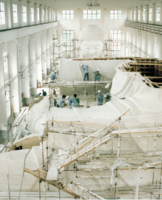 预安装把大佛分为上中下三段来安装,还对一些铜壁板作了必要的矫形和修整,也进行了初步的机械整饰。
