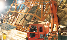 其後得到运输署协助,经过周密安排,用一辆大卡车居中,前後各用一辆吊车协助,终於把佛面及另外两件大青铜壁板运抵工地。