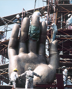 技术人员经过研究测算,把整个大佛分解成202块壁板,厚度由10毫米至13毫米不等。根据佛身的不同部位,制成极为精确的浇铸模具。浇铸出的每块壁板误差不超过3毫米。