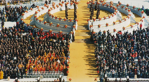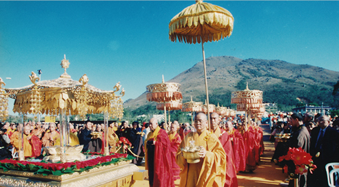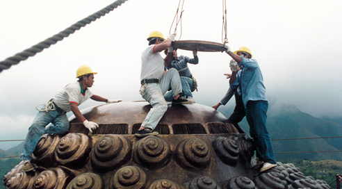 1989年10月13日, 大佛最後一块铜壁安装完成,当日并举行了庄严的圆顶仪式,这个建造耗时三年,凝聚了信众丶佛教界人士丶艺术家丶技术工程人员等人的无数心血,大佛卒告完成。