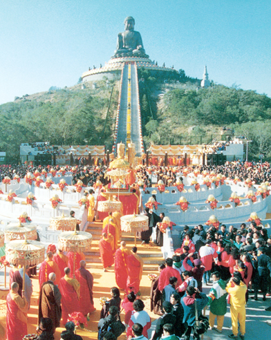 天坛大佛是香港重要的地标,吸引衆多中外信徒和游客前来朝拜参观。天坛大佛除了是一项杰出的工程外,更是近代佛教造像艺术的优异成就,亦是人类珍贵的文化遗产。
