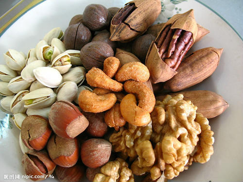 美国营养学会发言人朱迪·卡普兰博士表示,坚果中的欧米伽—3脂肪酸、蛋白质和纤维素有助于增强饱腹感,控制食欲。腰果和开心果在坚果中所含热量最低。另外,坚果最好生吃或干烤,应避免椒盐加工或油炸。